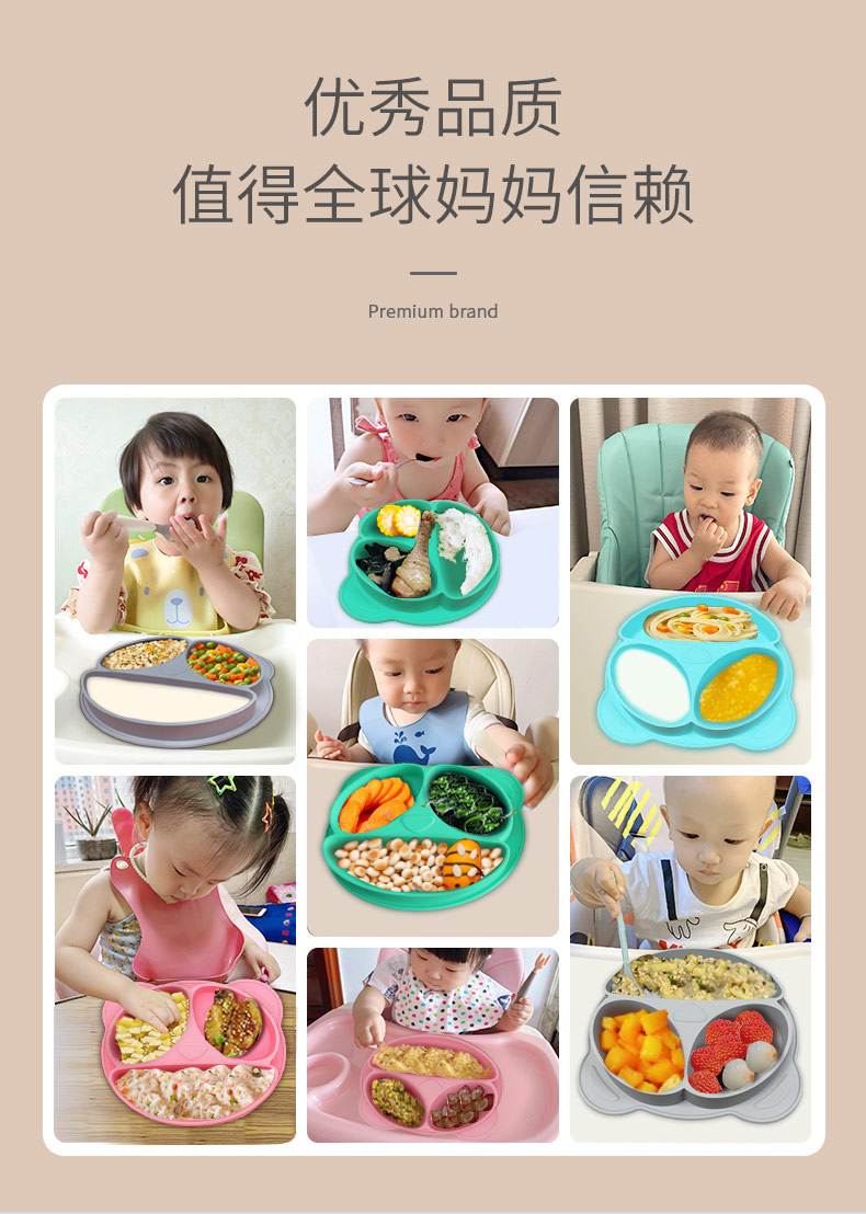 您的位置:首頁(yè) > 產(chǎn)品中心 > 硅膠嬰童用品 > 硅膠碗 > 吸附式硅膠分格餐盤(pán)