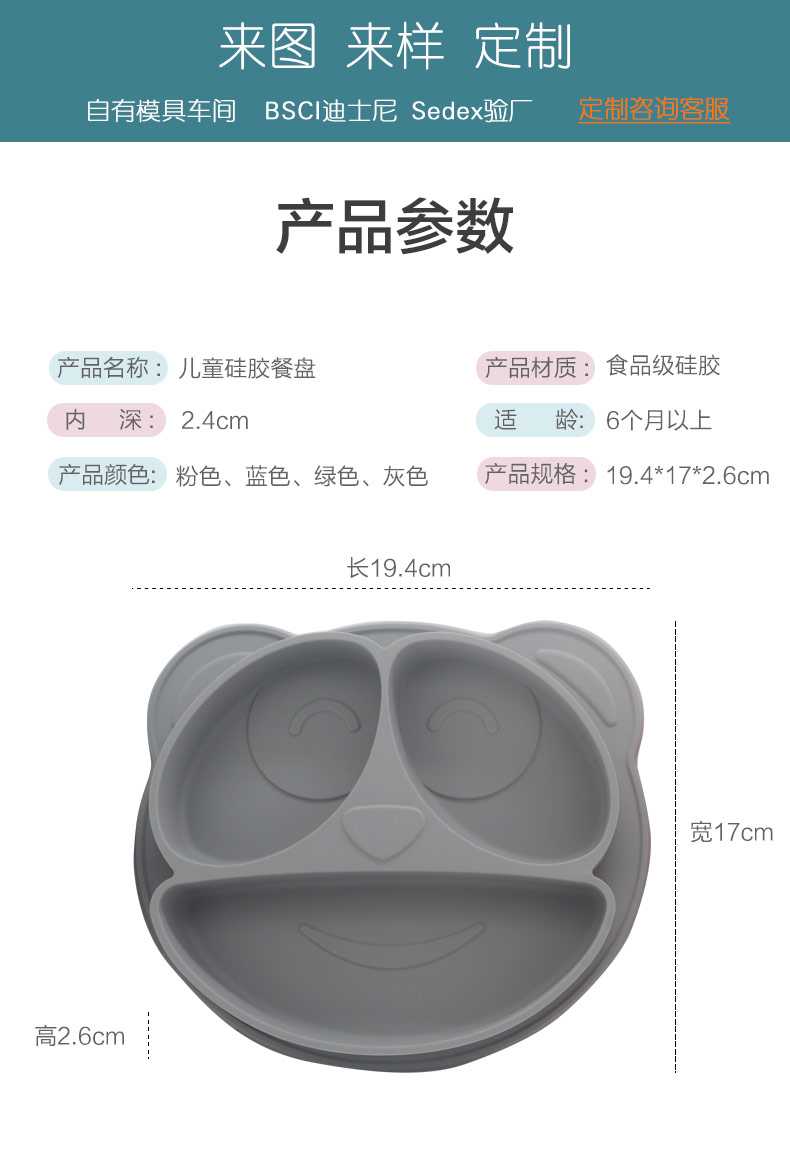 產(chǎn)品名稱:兒童一體式笑臉硅膠餐盤(pán)