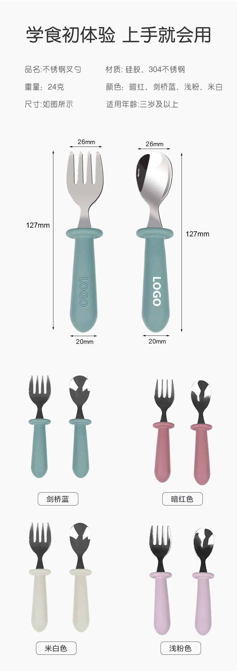 您的位置:首頁 > 產(chǎn)品中心 > 硅膠嬰童用品 > 兒童不銹鋼餐勺 硅膠手柄寶寶吃飯短柄叉勺 寶寶叉勺套裝餐具