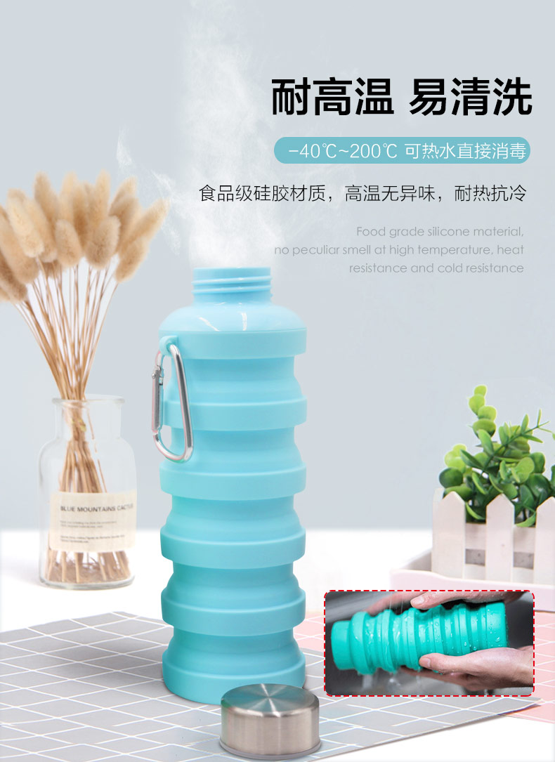 用途:食品級材質,不含BPA,可伸縮折疊,不占空間,抗摔 耐壓, 耐熱抗冷,多色可選,時尚健康
